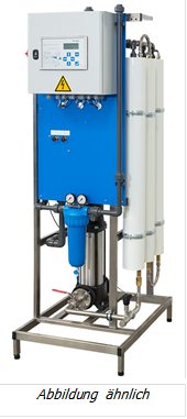 - drei potentialbehaftete Ventilausgänge 24V DC, max. 0,5 A für Speisewasserventil, Permeatventil, Konzentratspülventil